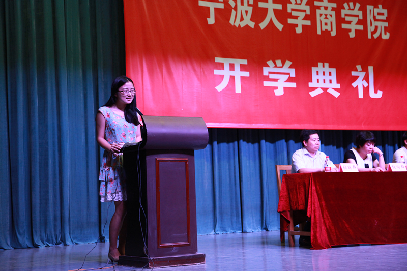 随后,2015级金融学研究生钱欢欢代表老生发言,刚刚完成宁波大学本硕角色转变的她从学术、做人做事等方面分享了自己的心得体会,并希望自己与研究生新生一道抓住机遇,勇于挑战。
