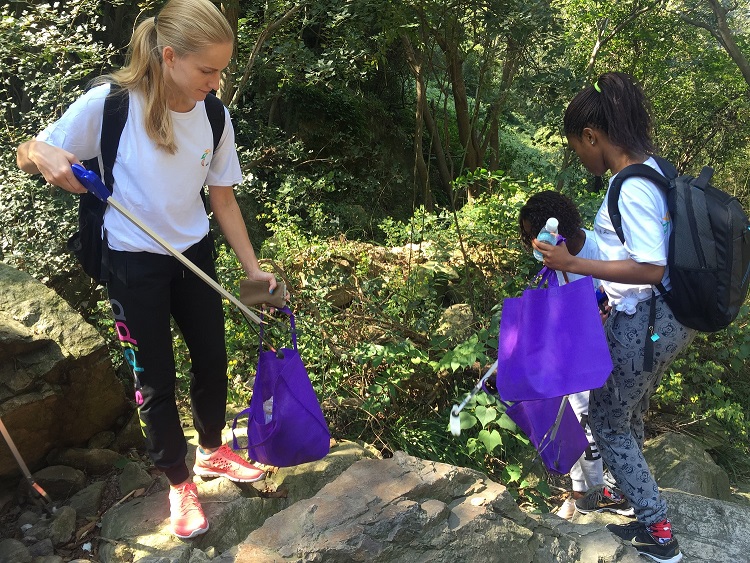 的留学生们到宁波北仑九峰山进行了游览,并进行了公益环保实践。