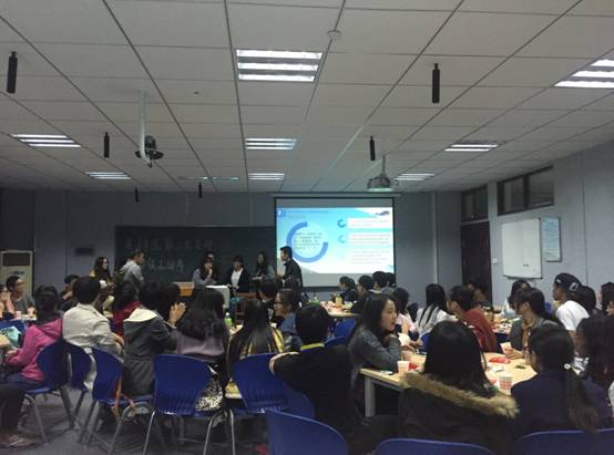 本次活动以游戏项目串接,主要包括三个环节,分别是中国传统知识竞答、谁是卧底、你画我猜。活动要求来自2012级到2014级国贸专业的同学与留学生同学进行随机分组,共同参与游戏环节并进行组别PK。在活动正式开始前,各组同学先进行了3分钟的组内自我介绍,并与同组留学生深入交流。随后,在游戏进行期间,各位同学积极上台,台上台下同学互帮互助,留学生认真读汉字、中国学生努力说英文,双方的协力合作赢得了台下阵阵掌声。游戏结束后,国贸系中文班和全英文班级分别由代表进行中英文总结,对各位到场的同学表达感谢。最后组内和全体合照更是将整个活动推向了欢乐的高潮,活动在参与者的热烈反响中顺利落幕。