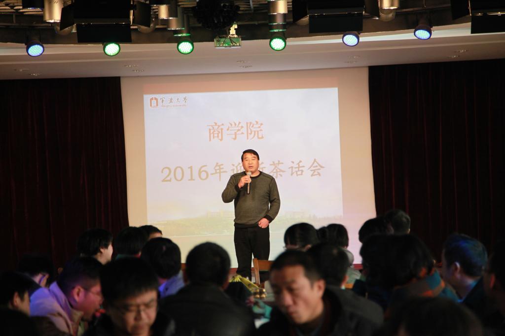 院长范柏乃、党委书记胡亚娥、副院长张向群、副院长杨丹萍、副院长张聪群、党委副书记邵丽、副院长盛沛锋等全体党政领导,与全院教职工欢聚一堂,共迎新年,共话发展。茶话会由学院分工会主席李浩明老师主持。