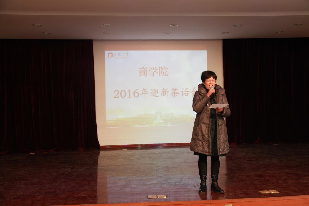 学院党委书记胡亚娥老师在致辞中强调,2016年适逢建校、建院30周年,学院将站在新起点上谋划新的更大发展,希望各位教职工充满信心,携手并进,取得更大的成绩。