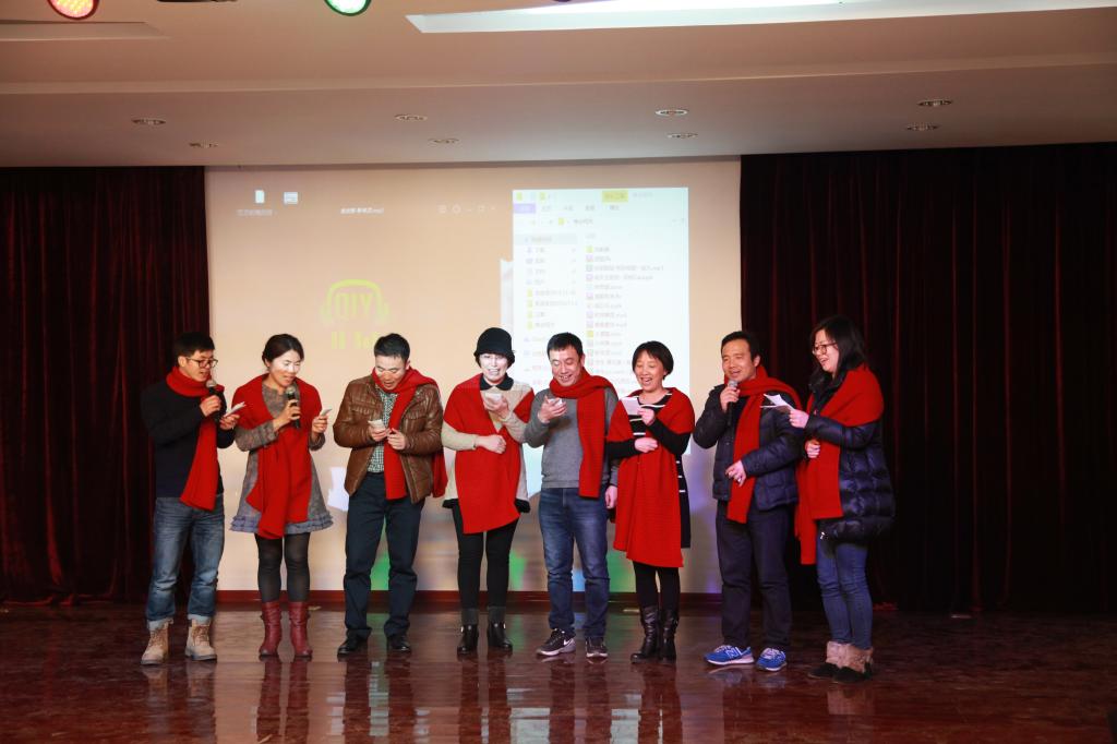 全体行政人员的舞蹈《小苹果》充满激情与活力,点燃全场,最终获得一等奖。茶话会最后在学院领导们的集体合唱《把根留住》中圆满落下帷幕。