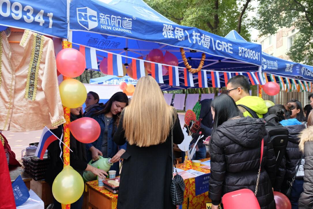 留学生会主办的“商耀中外”国际文化节之国家风情展在有思广场隆重开幕。来自印尼,韩国,俄罗斯,印度,也门,孟加拉国等13个国家留学生们展示了本国风情与特产,吸引了上千名师生前来参观。