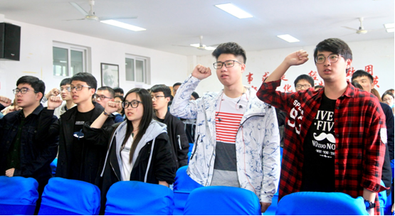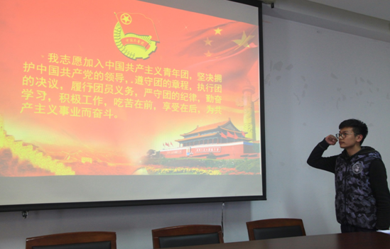 仪式上,全体学员一起重温了入团誓词。大家在团旗前高举右手,紧握右拳,再次郑重地宣誓,再次感受到共青团员的光荣感,为共产主义事业而奋斗的信仰再一次得到了升华。