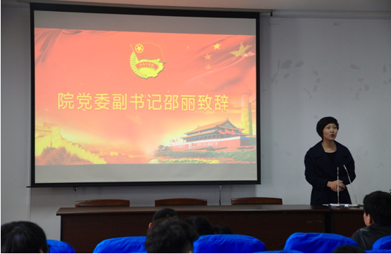邵丽首先代表学院党委向第十七期团校的学员们表示衷心的祝贺,同时对学员们提出四点要求:一要珍惜机会,认真投入,改善自己,改善世界;二要理论联系实际,大胆创新,勇敢作为,交出丰厚的“业绩报告”;三要加强交流与合作,提升合作精神和资源整合能力;四要主动传播正能量。