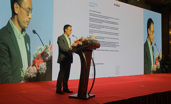 之后,副校长冯志敏教授代表学校对会议的召开表示热烈祝贺。冯校长表示,宁大正朝着建设创新型、研究型、综合型的高水平大学迈进,这个过程离不开校友会的支持。他肯定宁大中澳MBA校友在服务区域经济发展、创新创业等项目中取得了诸多辉煌成就,为母校的发展增添荣誉。同时,冯校长代表学校也对新一届理事会提出三点希望。他希望理事会能够搭建好校友之间的合作共赢平台,形成良性循环,积极推动校友事业和生活的共同发展;二、确保桥梁纽带作用,保留资源优势支持母校发展;三、建设交流合作基地,加强校友与校友之间、校友与母校之间、各个校友会之间的情感联络。他真诚希望校友们能够关心、支持母校,为母校的发展提供宝贵的建议和意见。最后,冯校长再次表达了对会议召开的祝贺以及对理事会的衷心感谢。