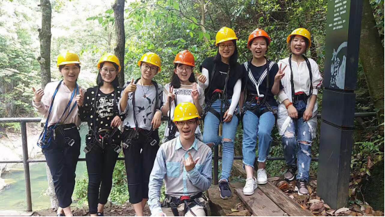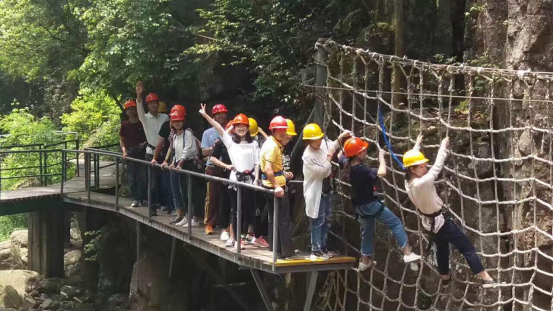峡谷穿越以自然风光为背景,建造了一系列复杂的悬桥、绳梯、滑索、独木桥、栈道、凌波微步、走丝赏景、勇投罗网等20余种户外穿越设施,通常离地1米到100米不等。各种项目都异常惊险刺激。一路的攀爬、危步、涉水,一路提心吊胆。紧张、激动、兴奋、胆颤,同学们小心翼翼的往前腾挪,谨慎缓步向上攀登。部分项目还需要两两组队,共同完成任务,虽然途中经历了一番体力不足、恐高害怕等“小困境”之后,大家都勇敢地克服了障碍,顺利通关。在活动过程中充分认识到团队合作、坚持不懈对于战胜挫折、实现目标的重要性。