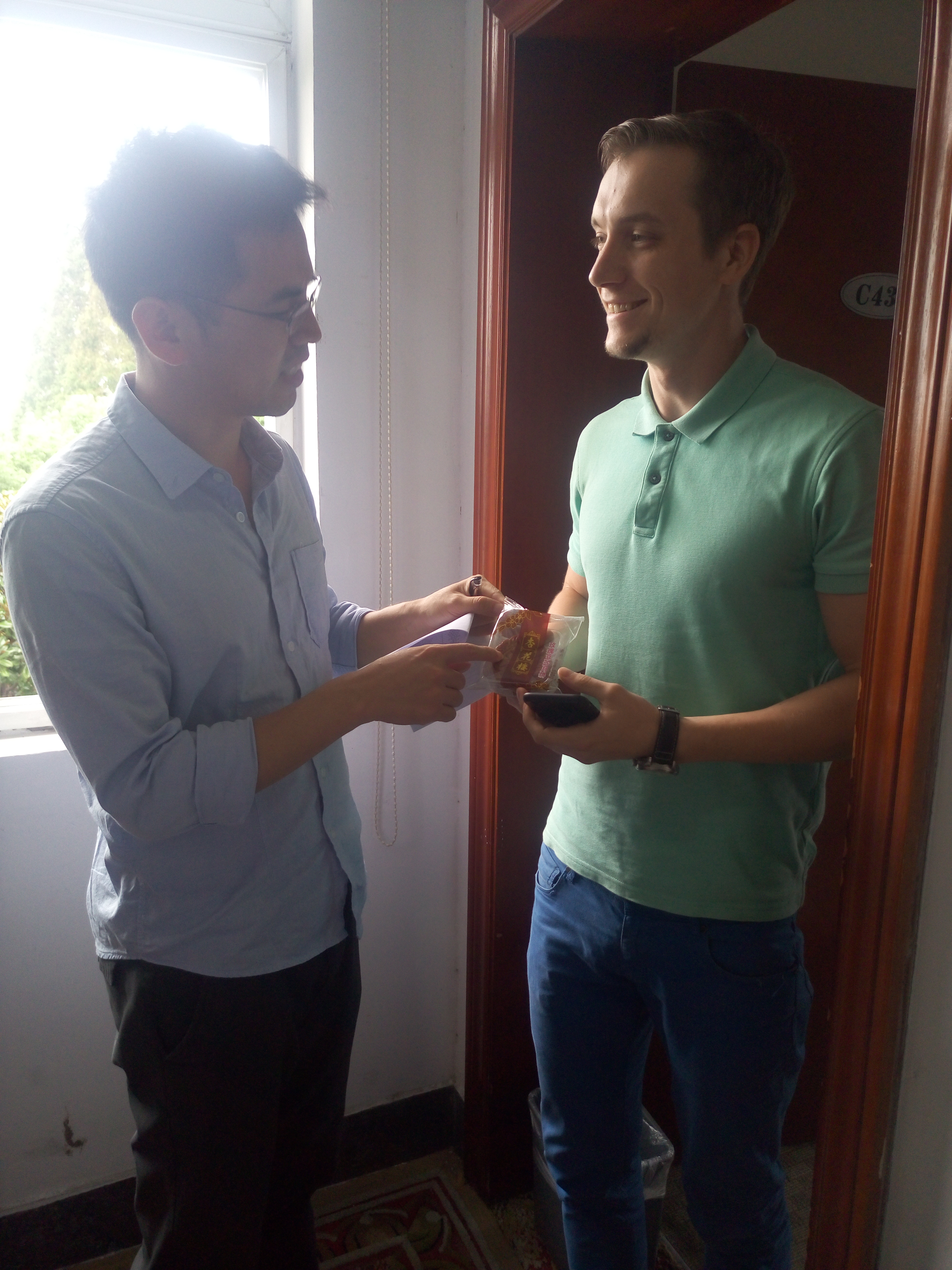的留学生,送上了国庆和中秋的节日祝福和慰问。在询问和了解留学生的假期去向后,两位老师叮嘱同学们假期注意安全,增强安全防范意识,并对国庆长假的合理安排给予了建议和指导。